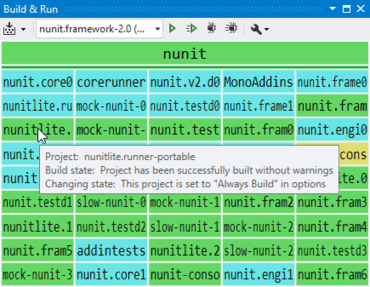 - ReSharper Build - 多数の依存関係を持つ大規模なソリューション向けに最適化された、新しいアウトプロセスの増分ビルドツールです。複数のプロセスを利用でき、プロジェクトのビルドステータスも確認できます。
